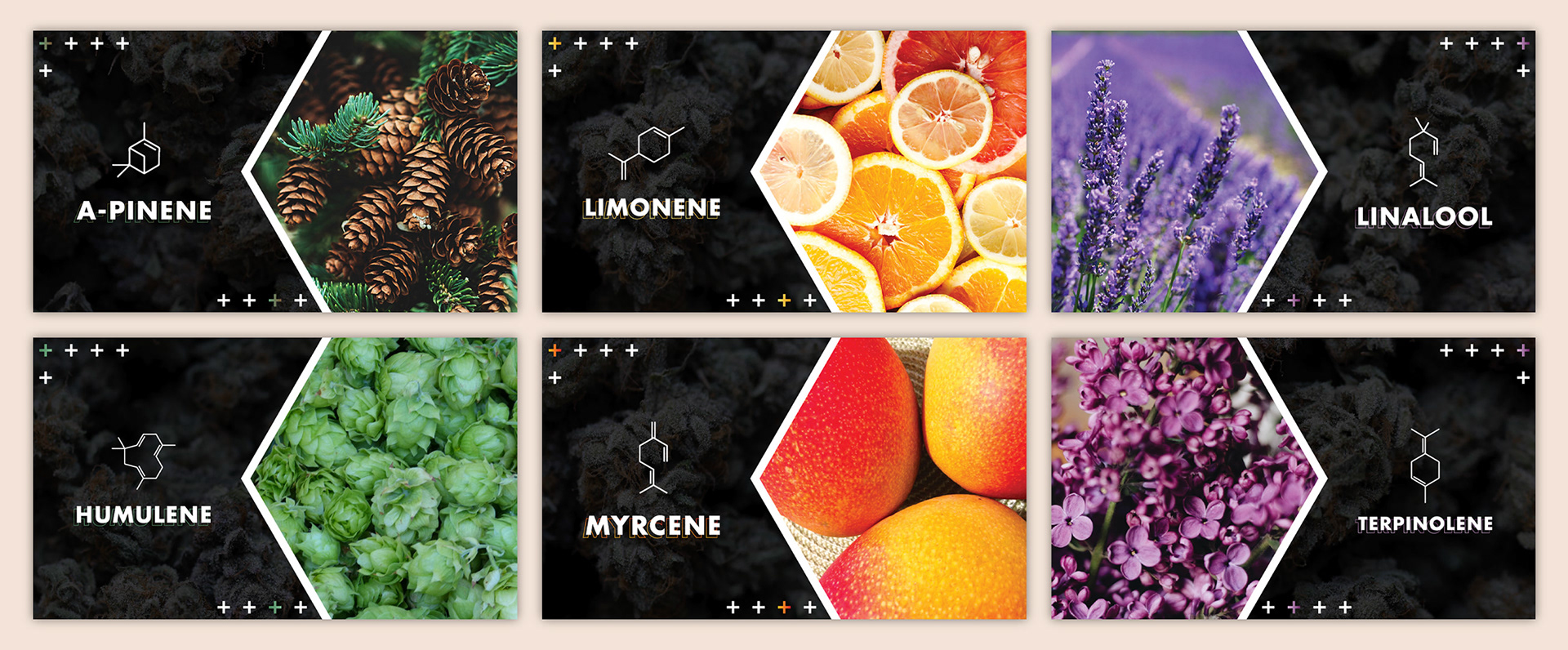 Pieces from the Terpene Project that were reformatted to be used as assets within Boveda blog content.