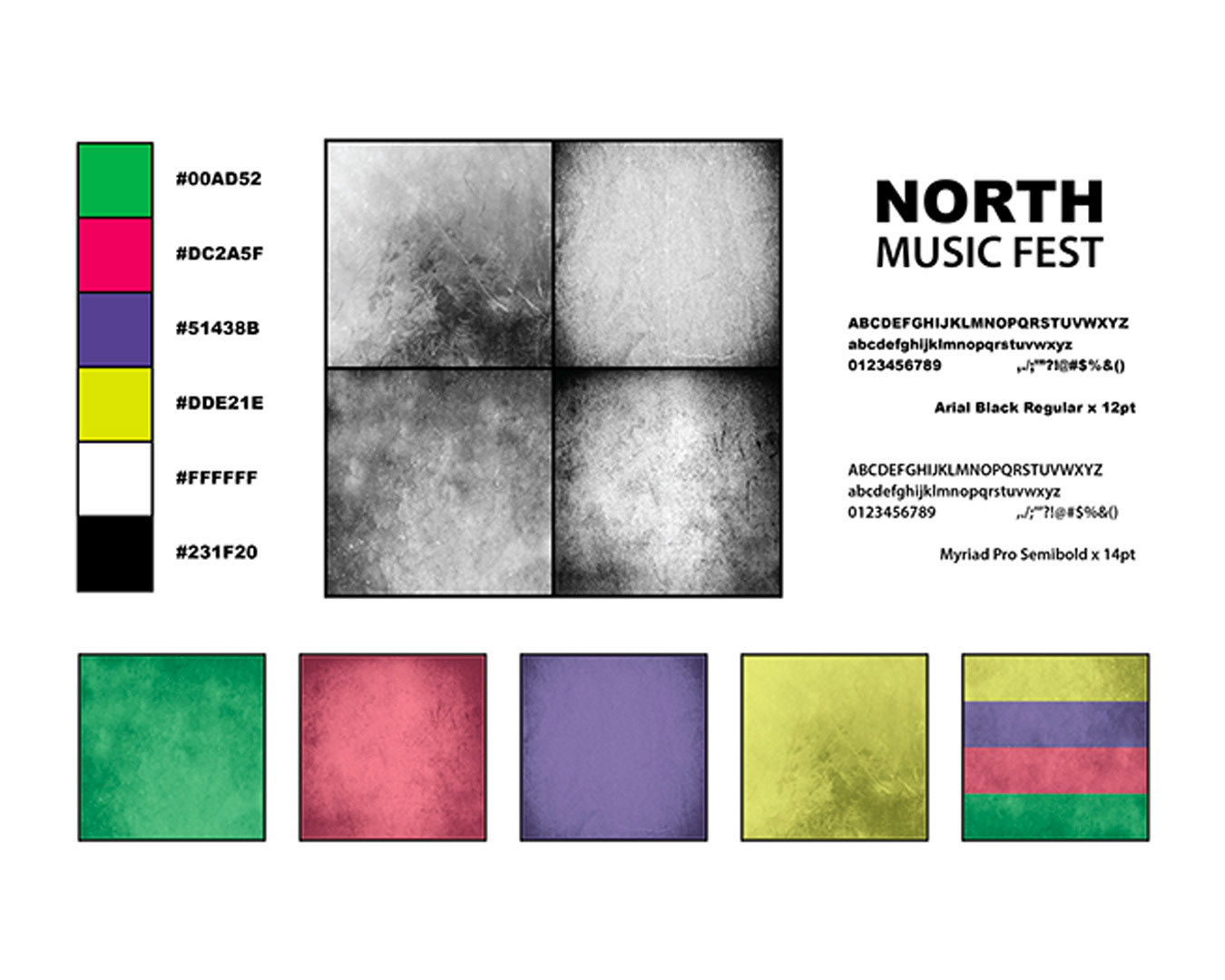 For this project my challenge was to develop a brand identity along with a website for a music festival in Mankato, Minnesota. The festival is called North Music Fest. The color scheme chosen for this festival is based on the bright, beautiful, neon lights seen within the northern lights. I wanted to embrace the attributes of the website and brand with the true culture and vibe of the northern states, and Minnesota.